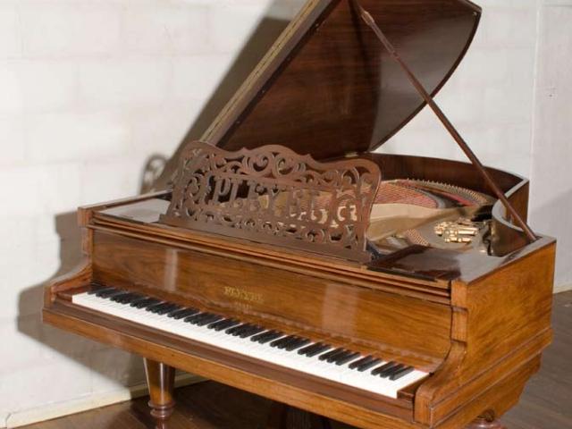 At some time during the 1980s, the piano was rebuilt, including extra fixing of the bridge to the soundboard and soundboard repairs, restringing, and replacement of the damper felts and hammer heads.