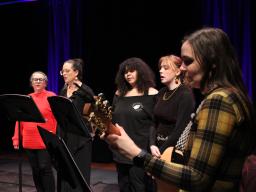 It’s Monday afternoon, and five tutors from the Community Music Centre (CMC) are on their way to Gugan Gulwan Aboriginal Youth Centre in Wanniassa to work with young people attending the music drop-in sessions there. Meanwhile, in the Peter Karmel Building at the School of Music, a group of Indigenous women are gathering to sing together as part of the Wamburang Women’s Choir, led by proud Ngunnawal woman Alinta Barlow.